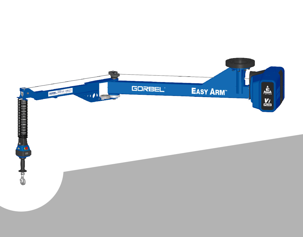De Easy Arm® maakt gebruik van de bekroonde G-Force®-technologie van Gorbel® en integreert deze in een scharnierende giek-ontwerp voor een kant-en-klaar plug-and-play hefhulpwerktuig.