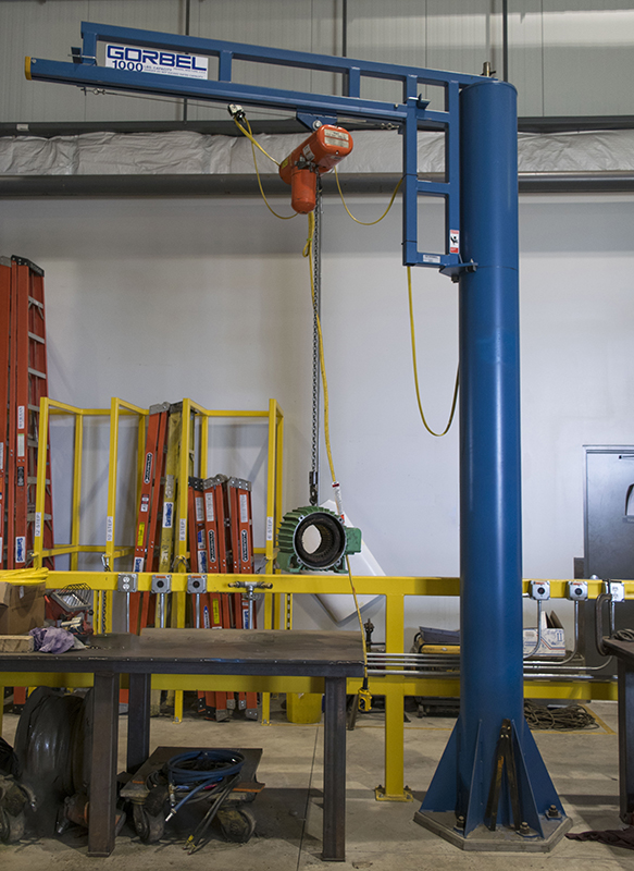 Free Standing Work Station Jib Cranes (WSJ360) are Gorbel’s most versatile crane and are best for low capacity, high productivity applications. They are the perfect jib crane to place underneath large bridge cranes, in open areas where they can serve several work stations, in outdoor applications such as loading docks, or in machining and assembly operations where they can be overlapped with other jib cranes to provide staged operation.