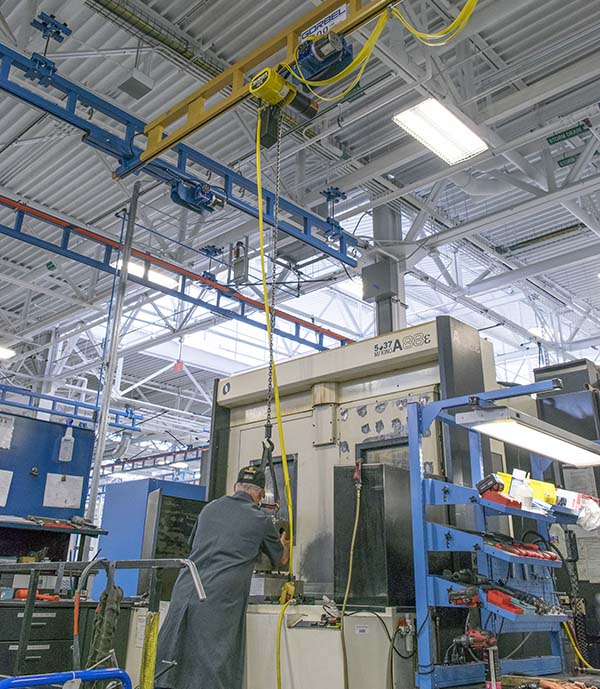 - Safe hoist operations. Each track profile is has a built in impact safety factor and is predesigned to accommodate hoist weight. A trolley operator can ensure the safe and ergonomic movements (vertical and/or horizontal) of the load or parts assembly at any point along the track.