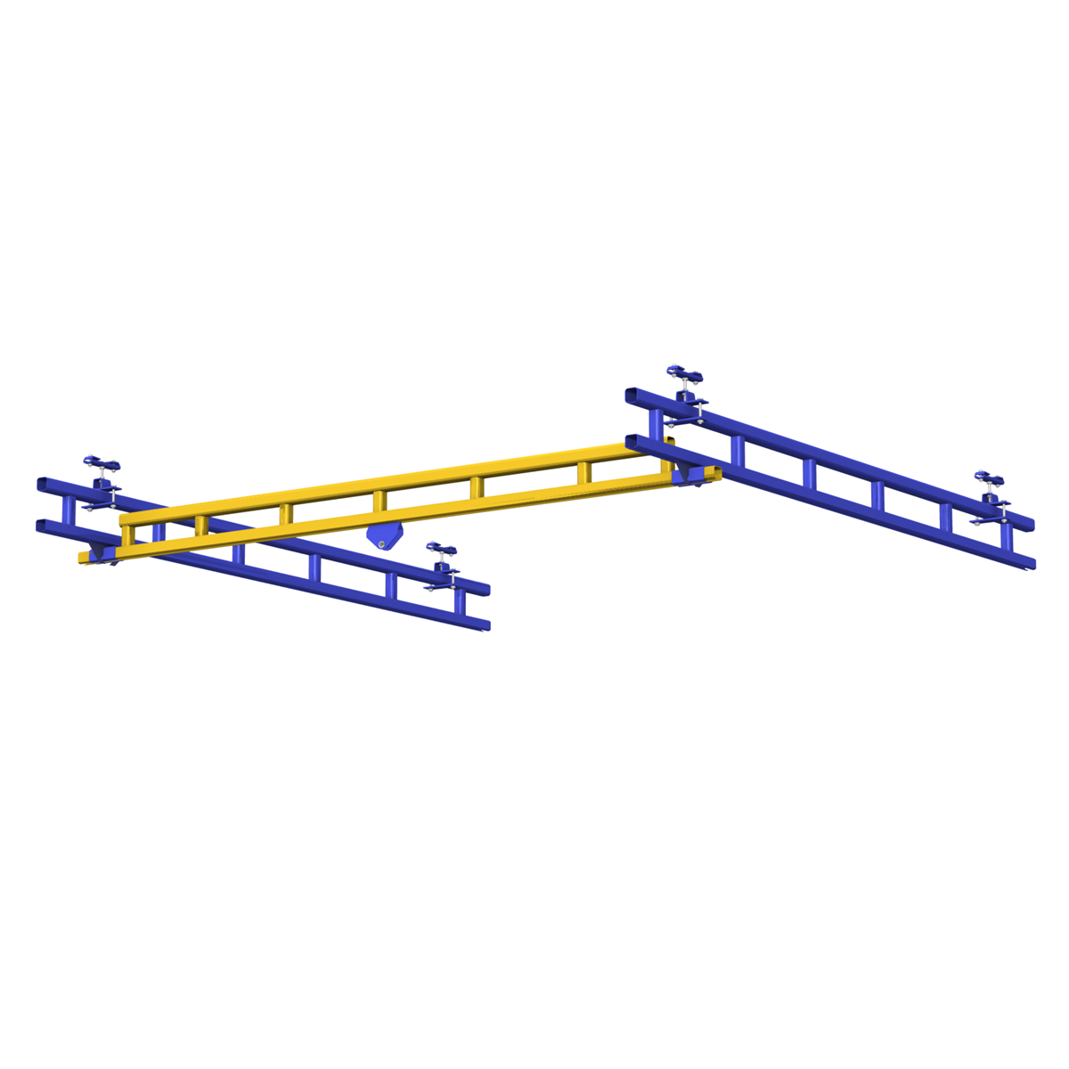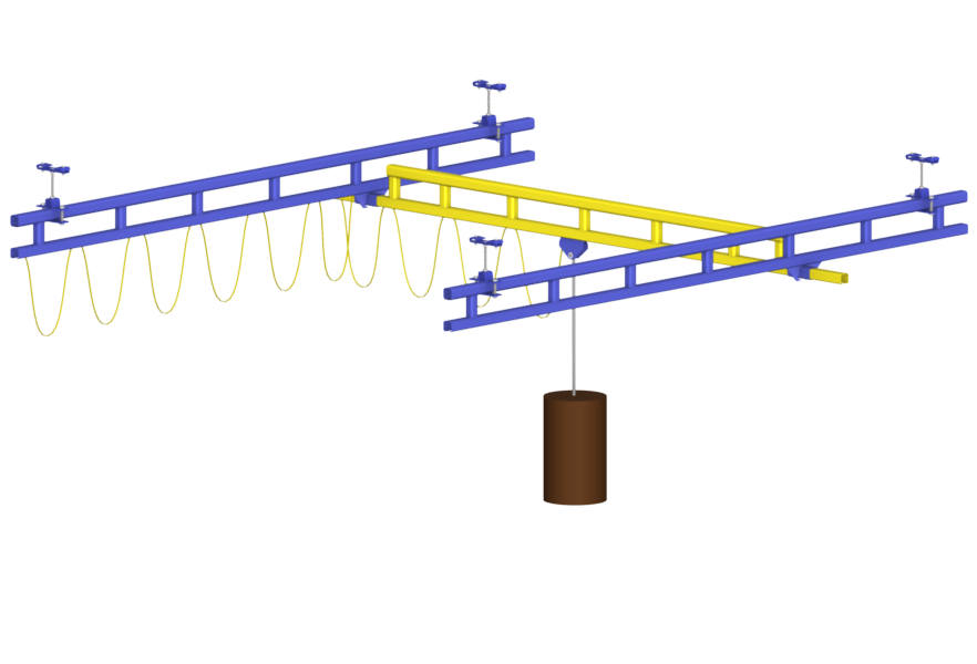 - Flexible design. With this system, the production manager can easily add or subtract extra sections to the track along the runway to fit the mechanical task or the transport of heavy loads. The bridge span can be up to 34 feet long.