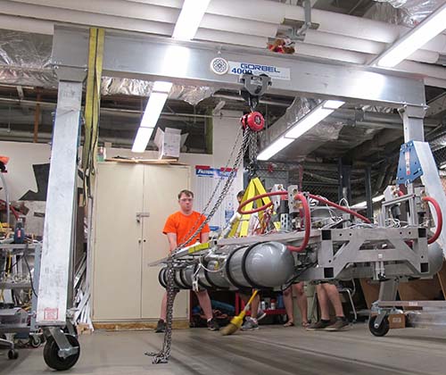 Hyperloop Pods are 18ft long, 4ft wide and weigh 2,000 lbs, therefore finding a lifting solution that has the capabilities to lift the vehicle in a safe manner for the team, and can fit the dimensions of the facility is difficult. The team was in need of a crane that had the ability to lift 2,000 lbs, fit within the footprint of their workstation and guarantee the safety of team members. The team needed a lifting solution that would help in vertical lifting for maintenance, installation, and vehicle loading. Additionally, the team is a student run program therefore financials are limited and cutting costs is crucial.
